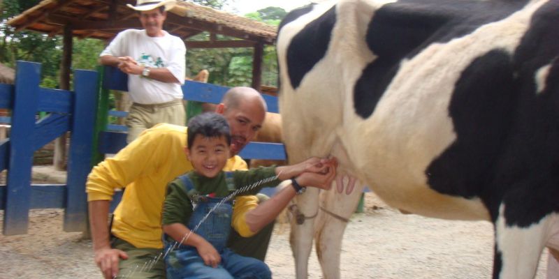 O leite fresco saudável que trazemos diretamente da vaca pode ter um gosto estranho para aqueles da cidade, mas aqueles que vivem no jardim estão familiarizados com ele e não trocam o leite em caixas.